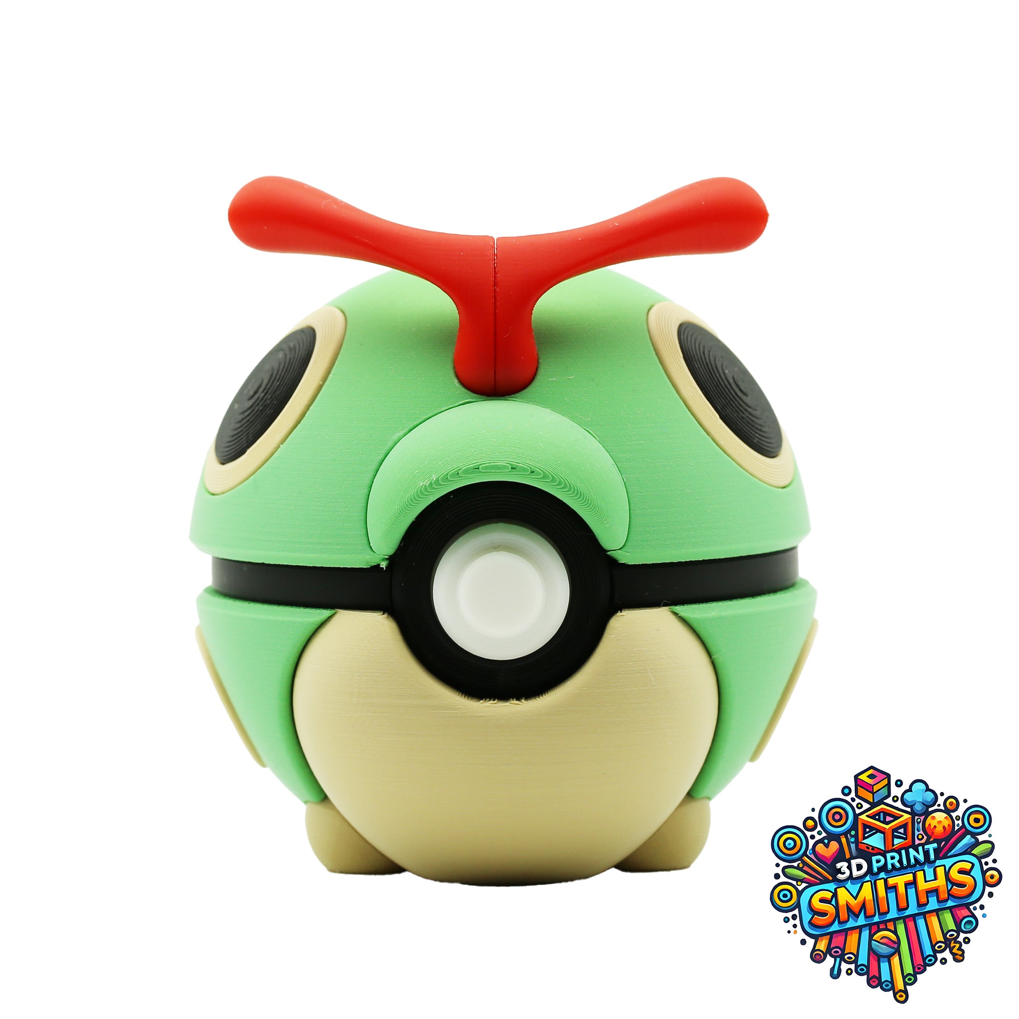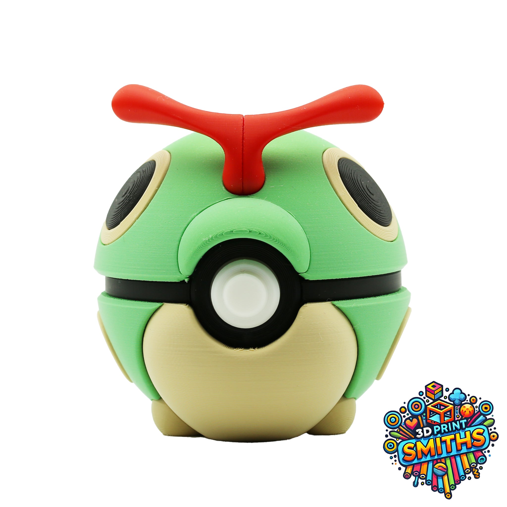 Each Caterpie Character Ball is multi-colour 3D printed, not painted. The colours are part of the print, so they won’t chip, flake or peel over time. It’s made to be displayed, handled and enjoyed.